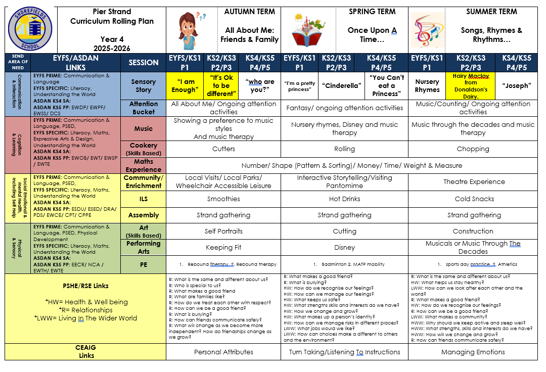 Pupils will be taught through a range of sensory experiences which meet their needs in a holistic and therapeutic education setting. Students within Pier strand will have time and space to carry out daily physio and assist students in the use of their equipment. They will be focussed on developing students' communication skills through a range of tools including; eye gaze and switches. These classes will be highly staffed to meet the pupils, physical, medical and learning needs.
